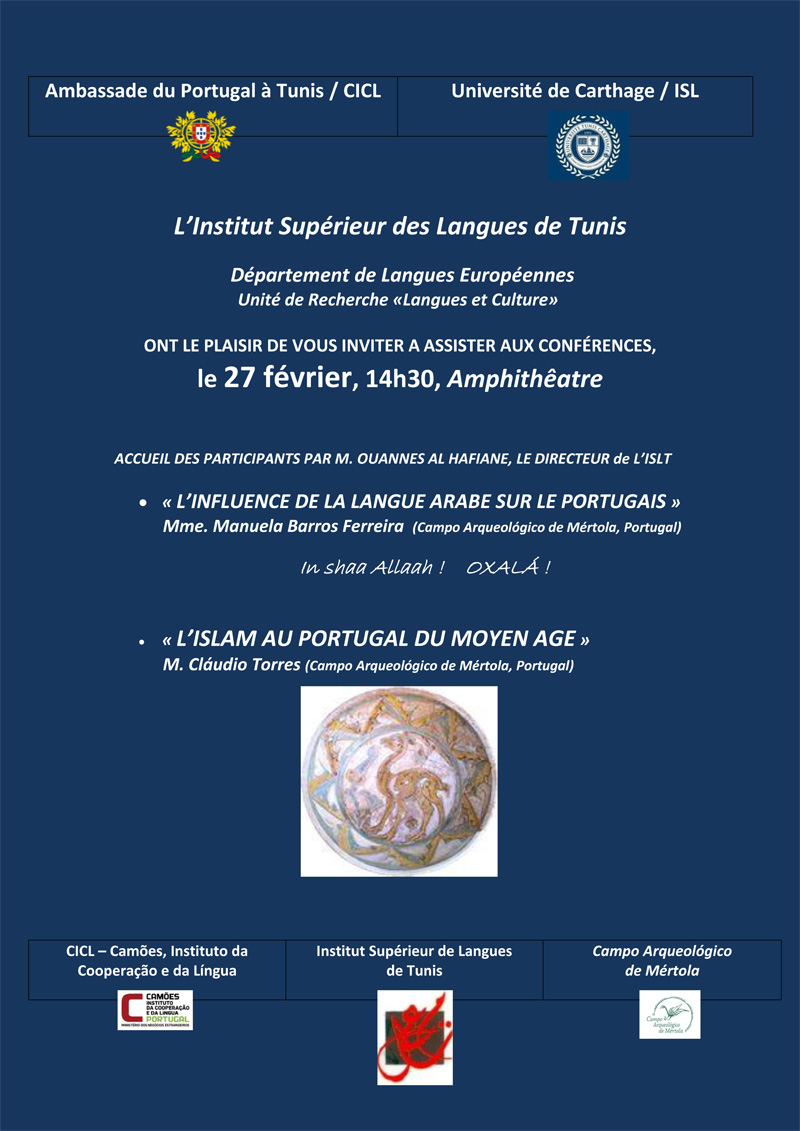 No dia 27 de Fevereiro, no Instituto Superior de Línguas da Tunísia serão proferidas as seguintes conferências:
