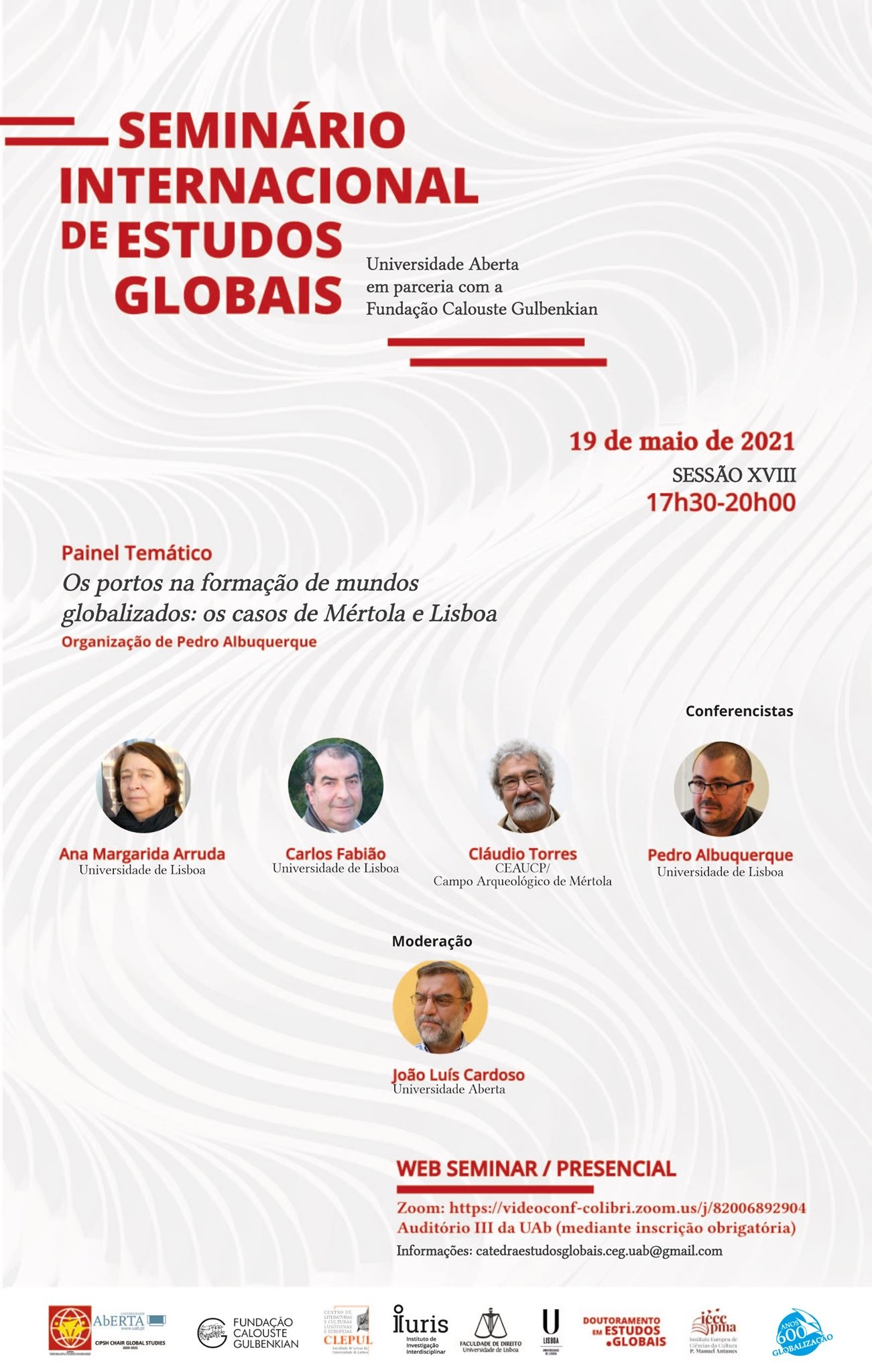 Na próxima 4.ª feira, dia 19 de Maio, entre as 17h30 e as 20h00, no âmbito do Seminário Internacional de Estudos Globais, terá lugar o painel temático "Os portos na formação de mundos globalizados: os casos de Mértola e Lisboa".