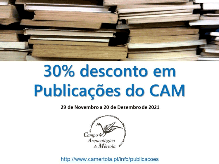 Entre 29 de novembro e 20 de dezembro, no âmbito da Feira do Livro de Mértola, as publicações do CAM estarão com 30% de desconto + portes de envio, em encomendas realizadas através do email geral@camertola.pt e enviadas via correio postal.
