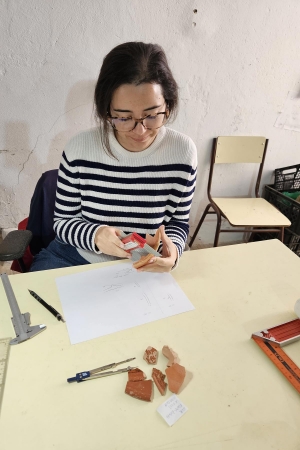 Agora, enquanto bolseira da Fundação para a Ciência e Tecnologia, tive a oportunidade de passar algum tempo em Mértola e, naturalmente, no Campo Arqueológico. Durante o tempo que aqui estive dediquei-me ao estudo da terra sigillata proveniente das escavações da Casa Cor-de-Rosa, que constitui uma parte fundamental do meu projeto de doutoramento, uma vez que se pretende analisar os ritmos de importação e consumo deste tipo de cerâmica na envolvente do Guadiana.