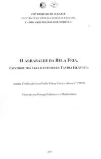 CAVACO, Sandra Cristina da Costa Fialho Palma – O arrabalde da Bela Fria: contributos para o estudo da Tavira islâmica. Orient. Susana Gómez Martínez e Luís Filipe Oliveira. Faro: [s.n.], 2011. Master’s dissertation in Islamic Portugal and the Mediterranean presented to the University of Algarve, Human and Social Sciences Faculty, and to Mértola’s Archaeological Field. 156, [LII] p. + 1 CD-ROM